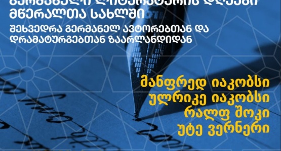 ა 4 დეკემბერს მწერალთა სახლში გაიმართება „გერმანული ლიტერატურის დღეები“ − ორდღიანი პროგრამა, რომლის ფარგლებში ქართველი მკითხველები თანამედროვე გერმანულ ლიტერატურასა და დრამატურგიას ახლო რაკურსიდან გაეცნობიან.
