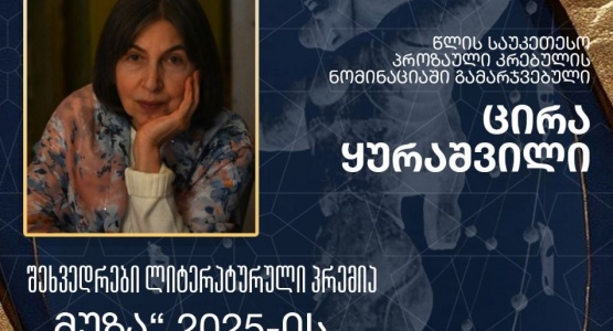 11 თებერვალს, მწერალთა სახლში, გაიმართება შეხვედრა წლის საუკეთესო პროზაული კრებულის ნომინაციაში გამარჯვებულ ცირა ყურაშვილთან.